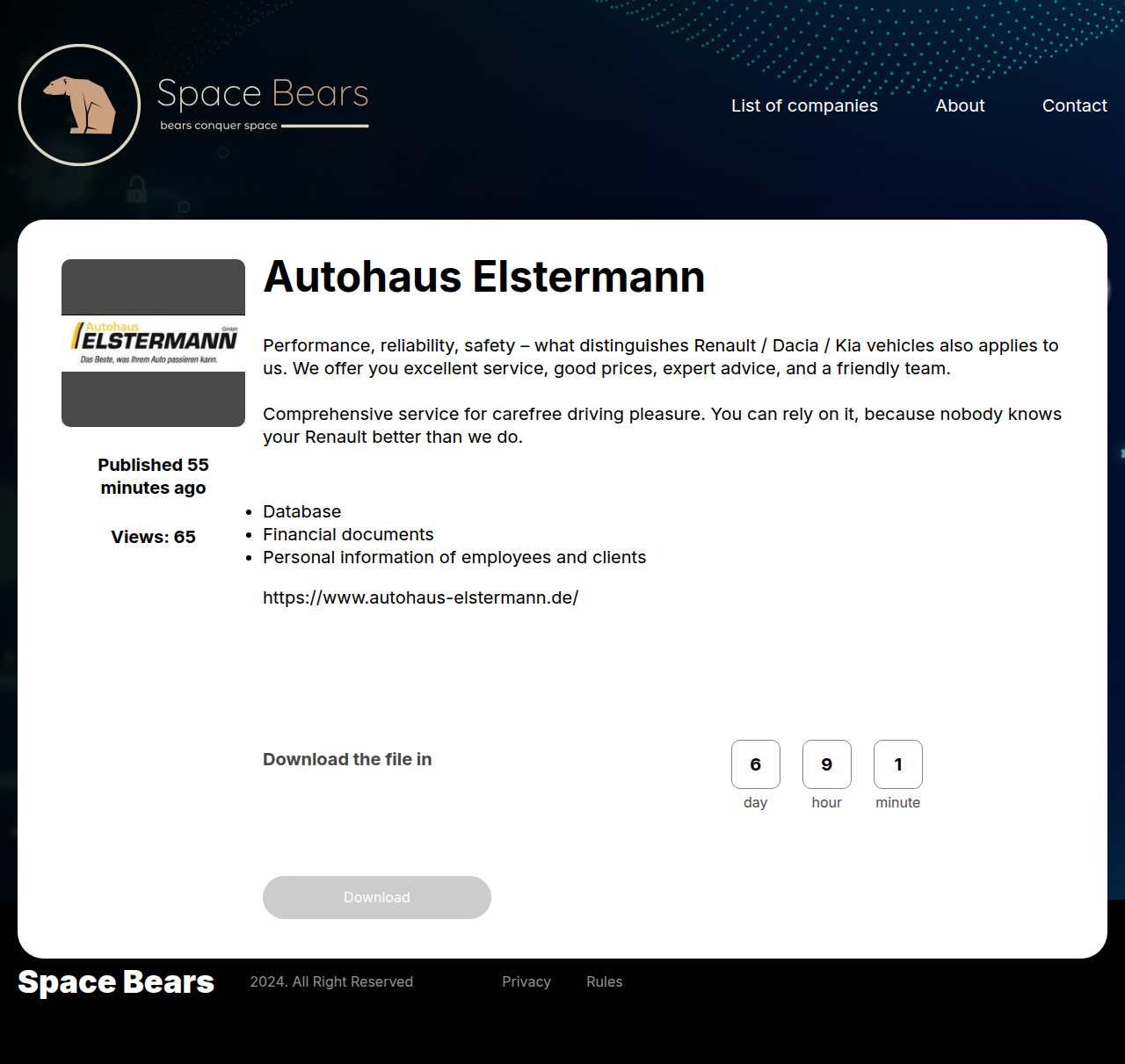 | Autohaus Elstermann | Performance, reliability, safety – what distinguishes Renault / Dacia / Kia vehicles also applies to us. We offer you excellent service, good prices, expert advice, and a friendly team.Comprehensive service for carefree driving pleasure. You can rely on it, because nobody knows your Renault better than we do.DatabaseFinancial documentsPersonal information of employees and clients https://www.autohaus-elstermann.de/ | Screen | |