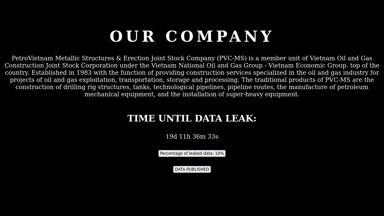 PetroVietnam Metallic Structures & Erection Joint Stock Company (PVC-MS) is a member unit of Vietnam Oil and Gas Construction Joint Stock Corporation under the Vietnam National Oil and Gas Group - Vietnam Economic Group. top of the country. Established in 1983 with the function of providing construction services specialized in the oil and gas industry for projects of oil and gas exploitation, transportation, storage and processing. The traditional products of PVC-MS are the construction of drilling rig structures, tanks, technological pipelines, pipeline routes, the manufacture of petroleum mechanical equipment, and the installation of super-heavy equipment.