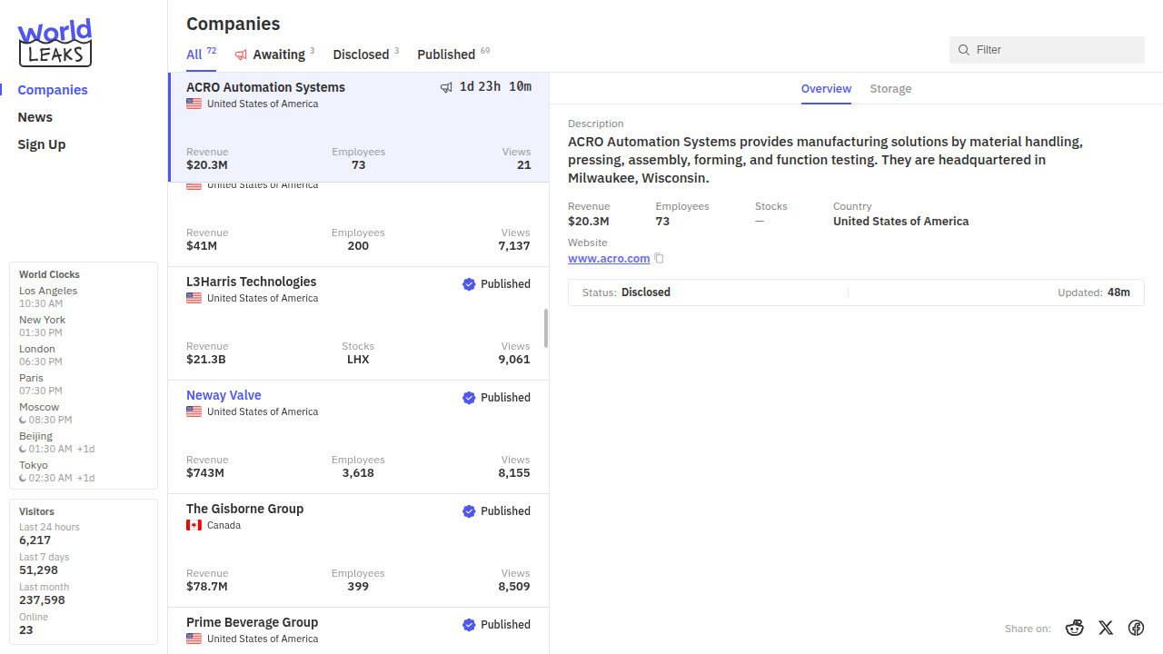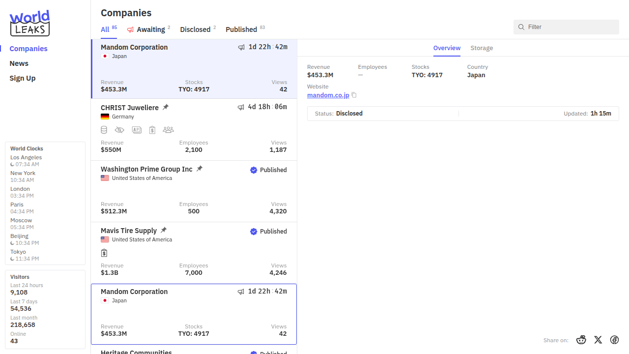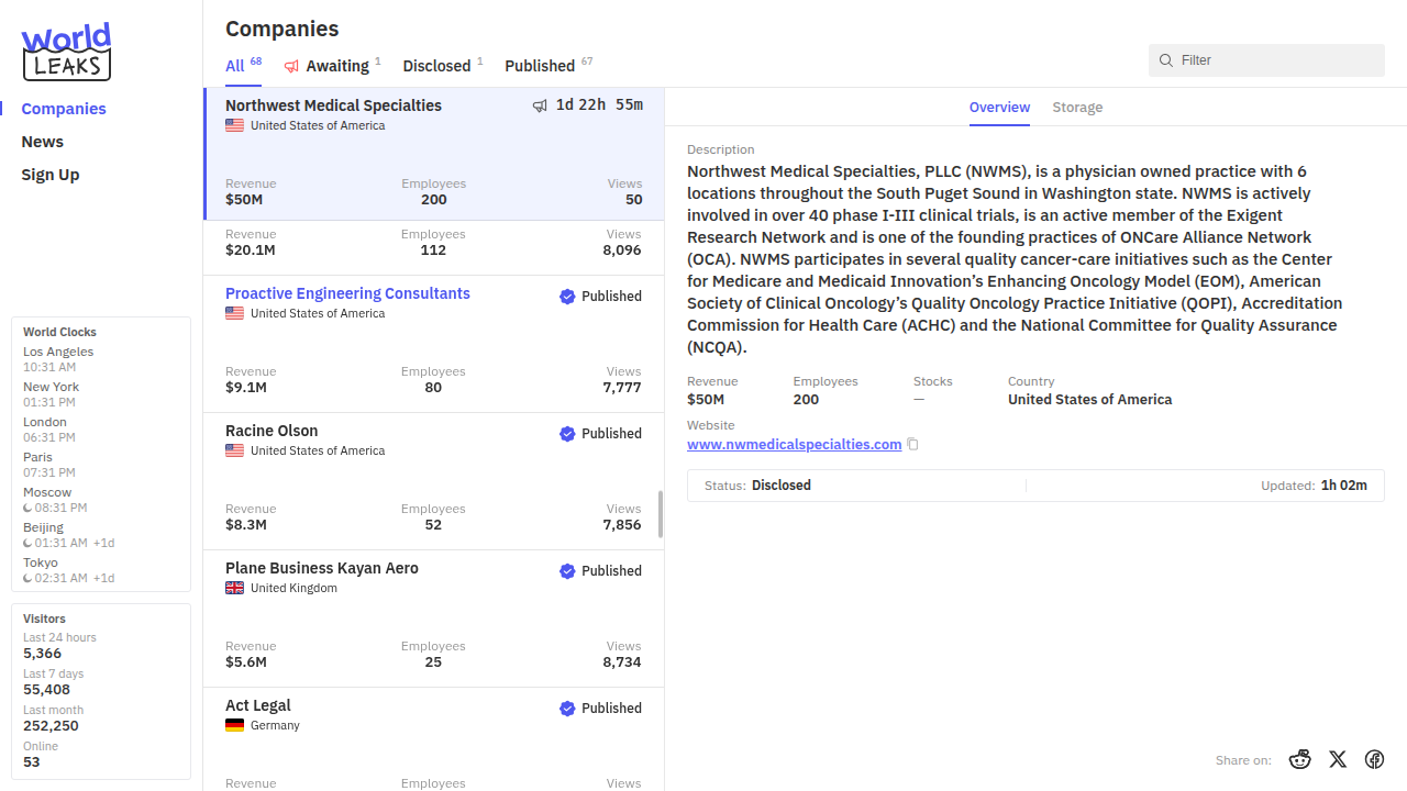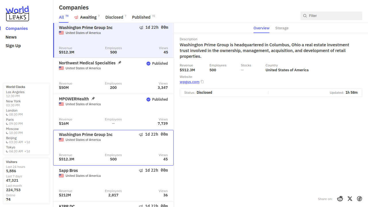 https://worldleaksartrjm3c6vasllvgacbi5u3mgzkluehrzhk2jz4taufuid.onion/companies/ |