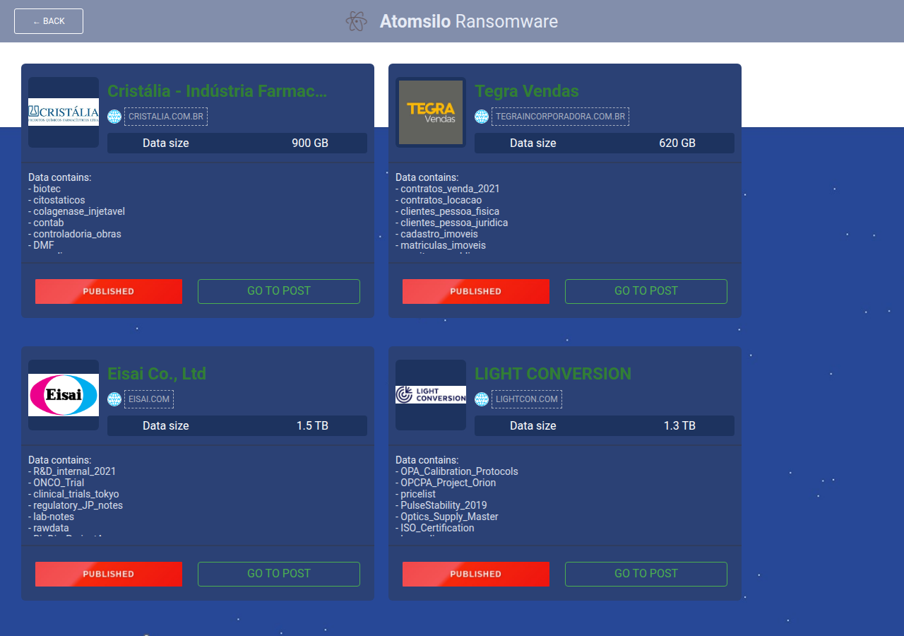 -A blog, Leak website, and management panel on TOR for leaking data of non-paying companies.